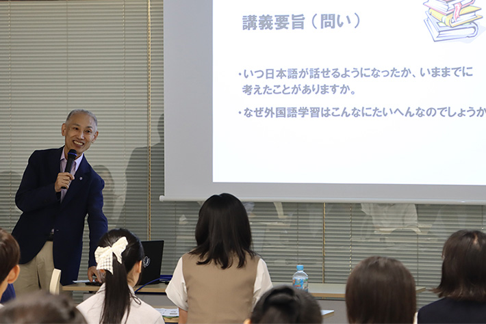 本学の人文・社会科学系の研究成果を日本社会、とりわけ次世代を担う若い人々に向けて還元すべく、2025年9月13日(土)に、「高校生のための大阪大学人文・社会科学系講義」を大阪大学中之島センターで開講しました。第1回の開催となった今回の講座では、大阪大学の知的背景である懐徳堂と適塾について知っていただきつつ、言語学の最先端の研究成果に触れていただきました。当日は、高校生とその家族等28名にご参加いただきました。