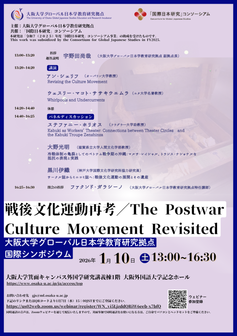 2026年1月10日(土)、国際シンポジウム「戦後文化運動再考」を開催します。