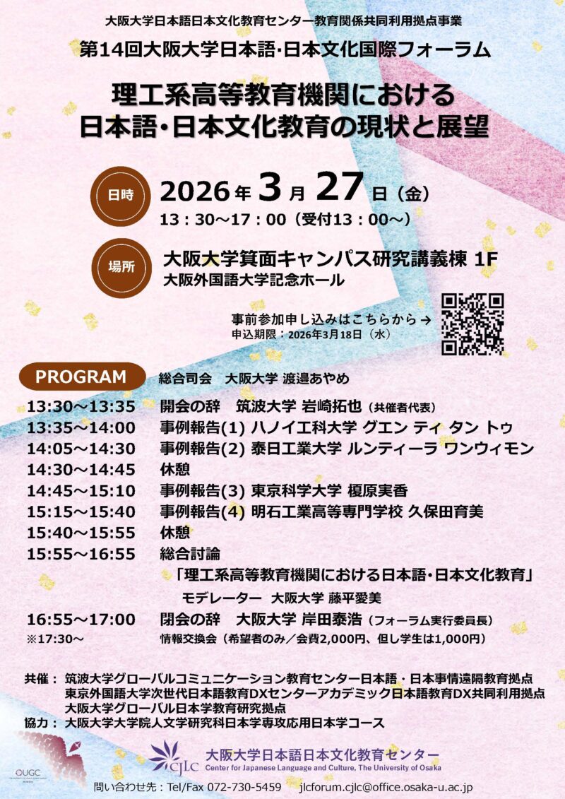 2026年3月27日(金)、第 14 回大阪大学日本語・日本文化国際フォーラムが開催されます。